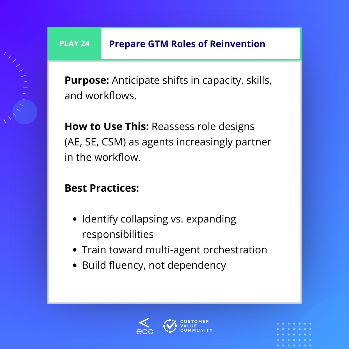 At ELEVATE 2025, co-hosted by ServiceNow, 80+ senior GTM leaders came together to define what it truly means to operate as AI-native and value-first. The outcome was the GTM Playbook, which outlines the AI-Native Value-First Engagement Lifecycle, a connected system that moves from insight-led discovery to collaborative value design, to continuous value realization, and ultimately to expansion.